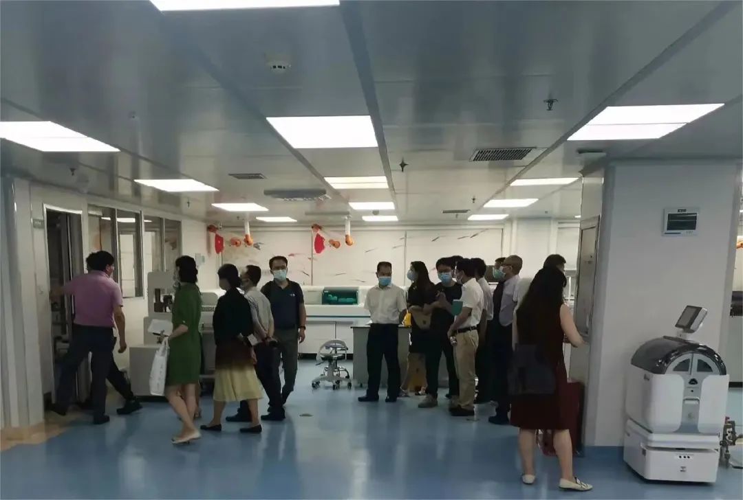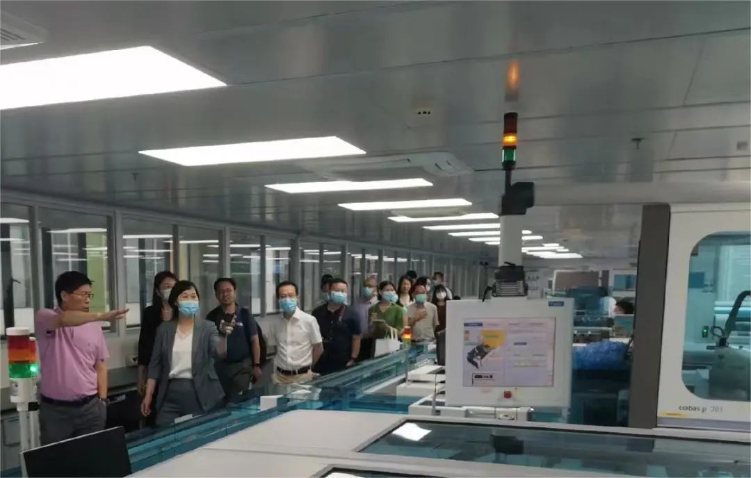 随后,调研组一行到达罗湖医院集团医学检验中心,在张秀明院长的陪同下实地参观了医学检验中心各专业组实验室,对医学检验中心标准化、自动化和智慧化建设情况以及学科建设、平台建设、科研教学等相关情况进行了详细了解。在参观过程中,医学检验中心的标准化管理水平、自动化建设水平和智慧化实验室管理模式给调研组一行留下了深刻印象并得到高度赞扬。