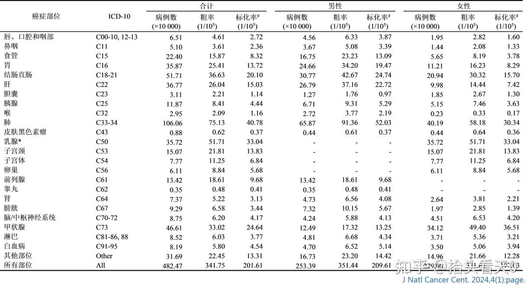 新发病例:482.47万世标发病率:201.61/10万男性世标发病率高于女性(209.61/10万 vs 197.03/10万)